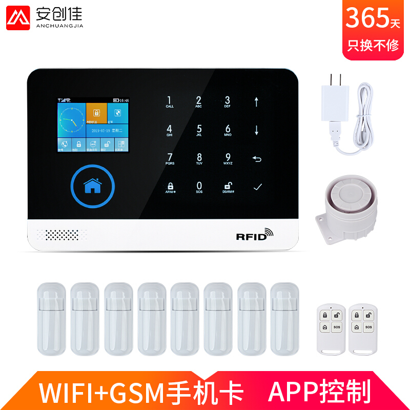 防盗报警器家用红外线人体感应小偷窗户门窗防盗无线wifi智能GSM主机店铺商用远程远距离安防报警系统 主机1+红外8+遥控2